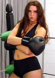 Take one always-sexy CHEROKEE, put her against one always-delicious LEE, add gloves and stand back! This is a five-round event, with only about 30 second breaks between the 3 minute rounds. It's non-stop action, and while the girls may show signs of fatigue, their punching gets even harder. It's a very dissatisfied Battling Beauty who finally lets go the knockout punch, telling her fallen rival she didn't come for a loss or a draw!