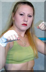 These gals aren't afraid to work over each other's bodies, and there's lots solid smacking and slamming of the bared bellies of the blonde beauties, that continues for a half hour! Finally one gal is knocked out... but that's not enough for the victor! Adrenaline still pumping, the camera still rolling, we come back to some more pounding, as the loser wakes to find it isn't over yet! And finally, a sleeper finishes the match once and for all, and the winner displays the limp body of her victim across her knee, like a hunter's trophy!