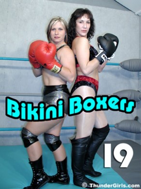 Okay, it's not really bikini boxing. But these marvelous pro wrestlers are at least wearing two piece suits!
