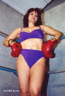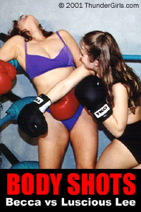 Originally called (how creative) "SLAMAZONS 2," this is another great boxing battle between the Rowdy Redhead (looking SO hot in her purple two piece) and the one and only Luscious Lee, trim, tough and sporty looking in her almost-menacing black outfit!