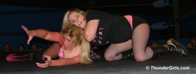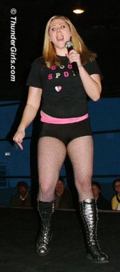 Our first experience with Kristin is NOT likely to be our last! This energetic young blonde came to wrestle and was FURIOUS that her opponent had cancelled. She marched to the ring and demanded the microphone, daring any of the girls on hand to come out and get their butt kicked.