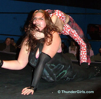 We were very excited to have Daffney on a ThunderGirls card, her history with big league promotions really brought attention to the card. But a reputation only lasts as long as it takes to step through the ropes, and a very tough local favorite, Naudia, is waiting to show the sexy brunette what SHE thinks about it!