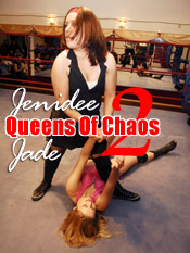 Slinky and sexy JADE may look a bit out of place in the ring against all-business JENIDEE, but what lies beneath that skimpy outfit is a battling beauty ready to rock and roll right over her opponent.